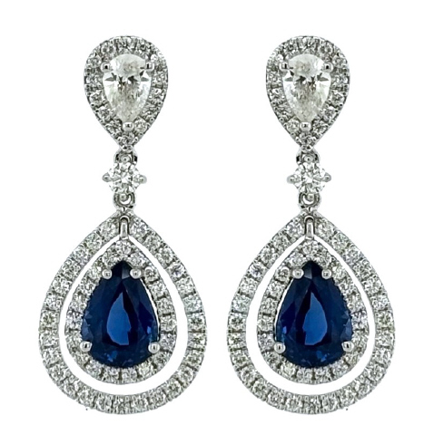 18kt white gold sapphire and diamond hanging earrings