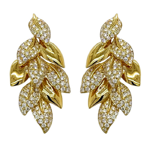 18kt yellow gold leaf style diamond dangle earrings.