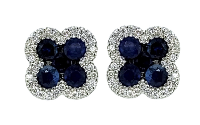 18kt white gold clover style sapphire and diamond earrings.