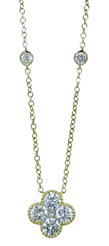 14kt white gold diamond clover pendant and diamond by the yard necklace