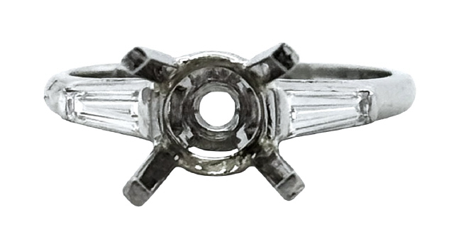 Platinum baguette diamond semi-mount ring