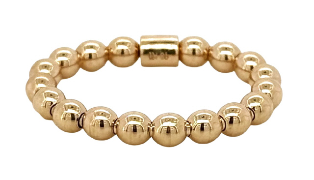 18kt rose gold stretch bead ring. Size 6 to 8.
