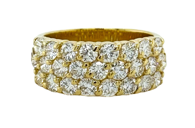 18kt yellow gold half way 3-row diamond band.