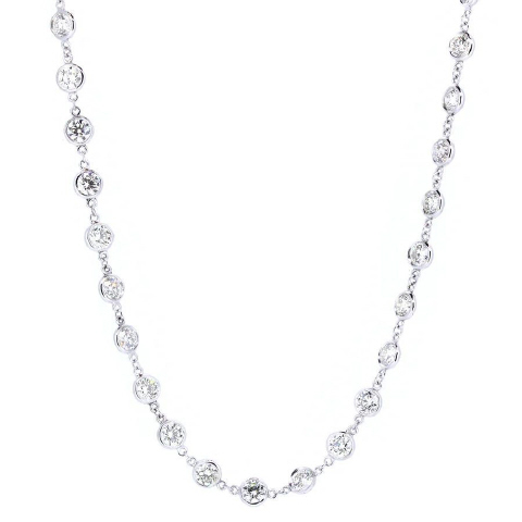 18kt white gold bezel set diamond necklace. 16.25"