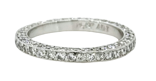 Platinum 3-sided bead set diamond eternity band. Size 7