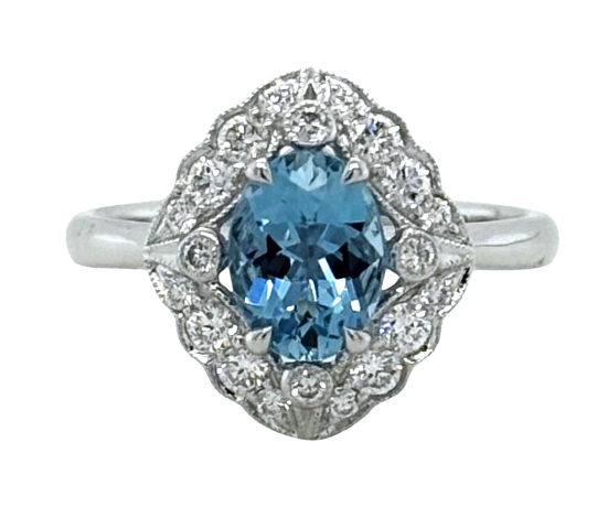 Oval Aqua .94ct Round Diamonds 20/.40tw G-H/VS2-SI1