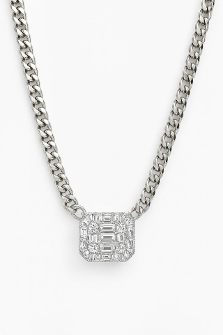 18kt white gold diamond illusion pendant with 14kt white gold curb link chain