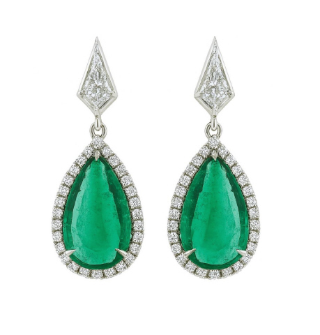 Pearshape emeralds 3.63ct & 4.36ct GIA 2235488710 16.10 X 9.20 x 3.89mm & 15.93 x 9.26 x 4.32mm Round diamonds 0.81tw Kite diamonds 2/0.75tw G-VS