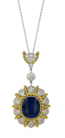 Cushion sapphire 11.35ct GIA 5231578194 15.10 X 12.95mm Round diamonds 46/2.50tw+/-