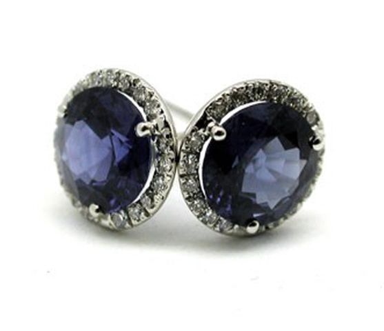18kt white gold sapphire and diamond halo martini stud earrings.