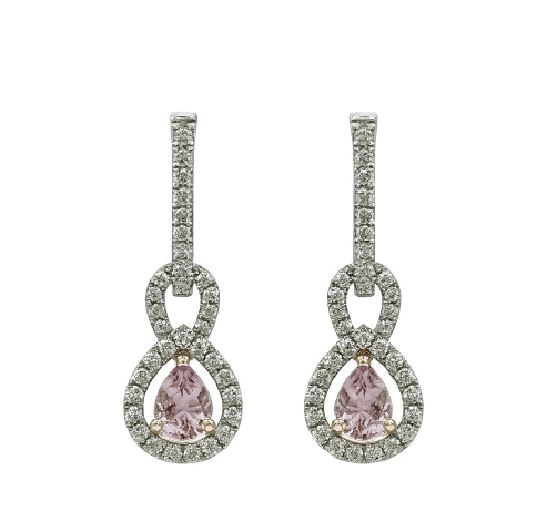 18kt white gold diamond and pink morganite hanging earrings