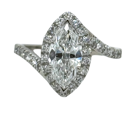 Platinum marquise diamond halo ring
