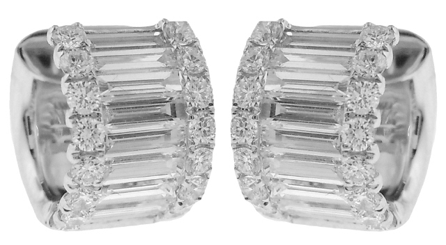 18kt white gold round and baguette diamond huggie earring