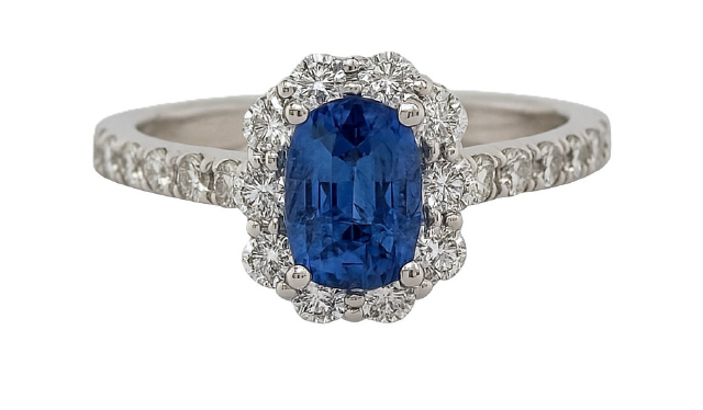 Cushion sapphire 0.60ct Round diamonds 24/0.54tw