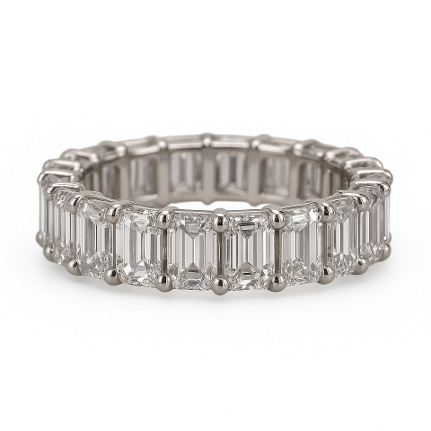 LAB GROWN - Platinum emerald cut diamond shared prong eternity band