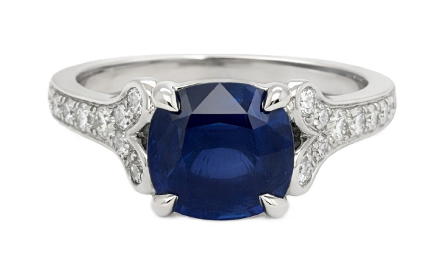 Platinum cushion sapphire and diamond ring