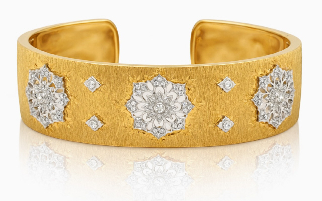 18kt two-tone diamond flower bangle