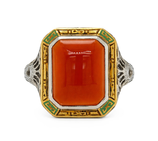 14kt white gold bezel set carnelian ring