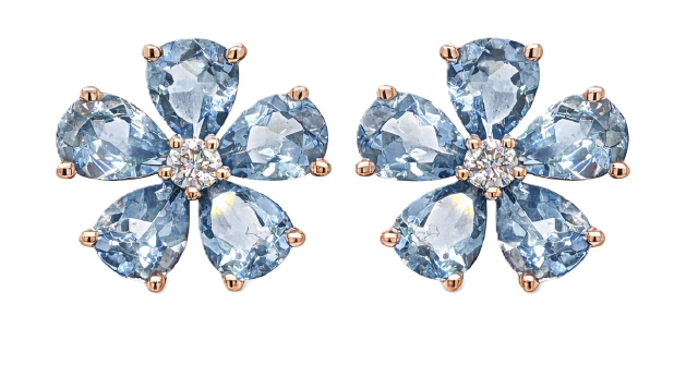 18kt rose gold pearshape aqua and diamond flower earrings