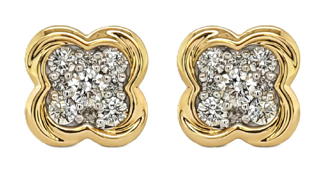 14kt yellow gold diamond clover earrings.