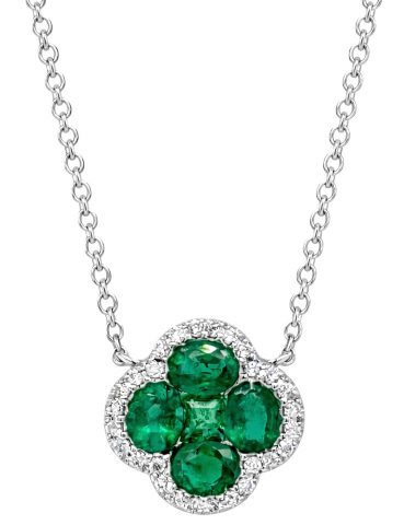 18kt white gold emerald and clover pendant with chain