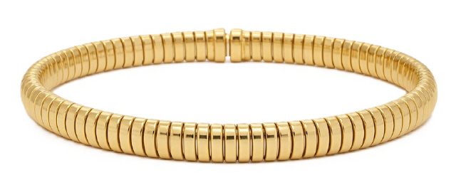 18kt yellow gold Tubogas flex cuff bangle bracelet.