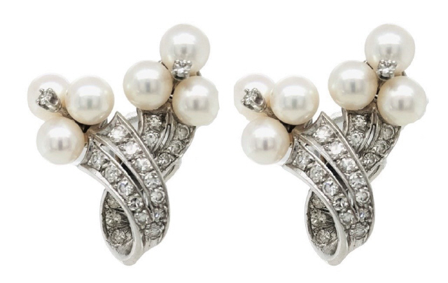 14kt white gold pearl and diamond earrings