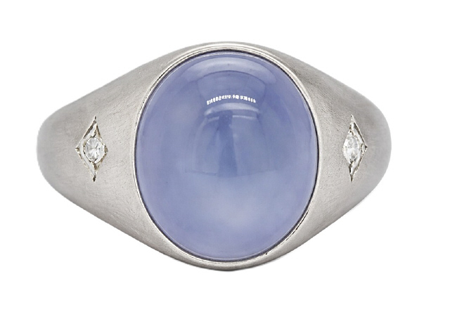 Platinum star sapphire and diamond ring