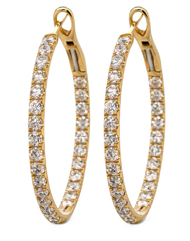 14kt yellow gold inside outside diamond hoop earrings