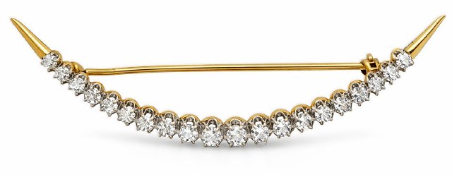 14kt two-tone diamond victorian style cresent pin