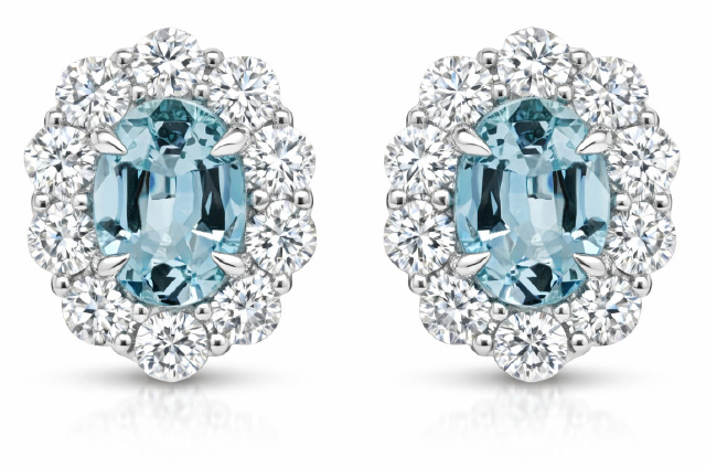 18kt white gold aqua and diamond halo style studs.
