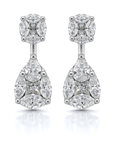 18kt white gold pearshape, marquise and princess cut diamond earrings