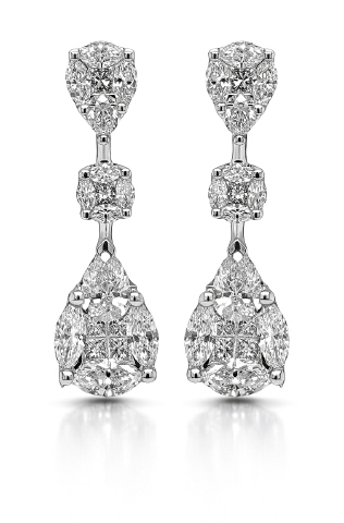18kt white gold pearshape, marquise and princess cut diamond earrings