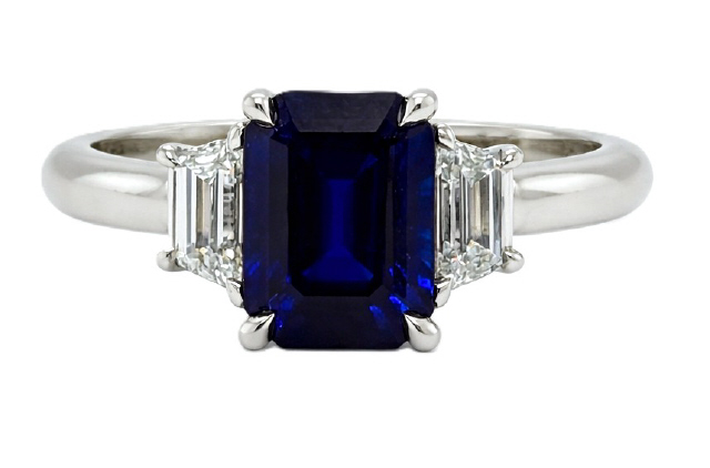 Emerald cut sapphire 1/2.45ct GIA#2233769511 8.39 x 6.30 x 4.61mm Sri Lanka Trap diamonds 2/0.45tw E-F/VS Size 6.5