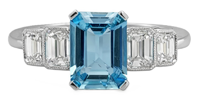 Emerald Cut Aqua 1/1.12ct Emerald Cut Diamonds 4/.77tw G-H/VS2-SI1