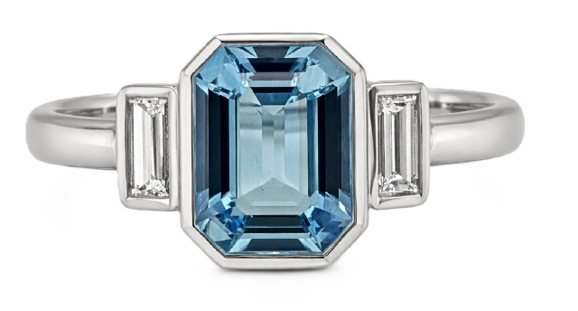 Emerald Cut Aqua 1/1.59tw Baguette Diamonds 2/.24tw G-H/VS2-SI1