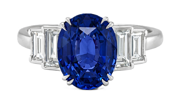 Baguette diamonds 2/0.26tw F-G/VS Baguette diamonds 2/0.39tw F-G/VS Oval sapphire 3.36ct GIA#5211796087 9.70 x 7.98 x 5.05mm Size 6.5