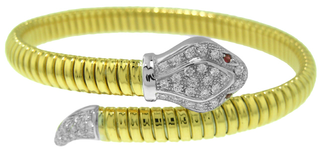 8kt two-tone serpentino diamond bangle bracelet.