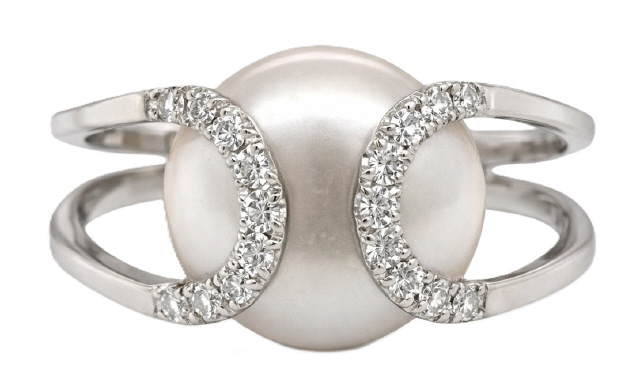 Round diamonds 18/0.27tw G-H/SI1-2 Button pearl 13mm Reference Yvel#R-1-HM-W Lists new $4650 Size 6