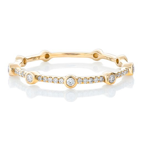 14kt yellow gold diamond band with bezel set diamonds.