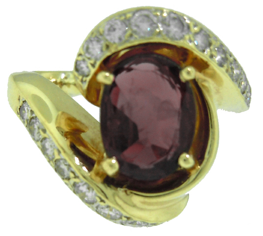 Oval ruby=1/2.29cts Diamonds=18/.65tw+/- F-G VS-SI