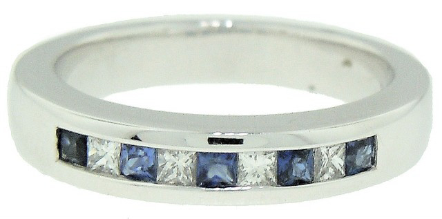 Platinum PC diamond and sapphire channel band
