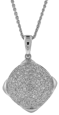 18kt white gold pave diamond puff pendant with 16" chain