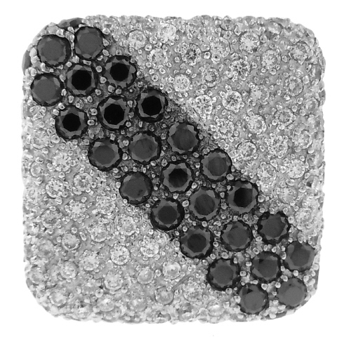 18kt white gold pave set white and black diamond ring