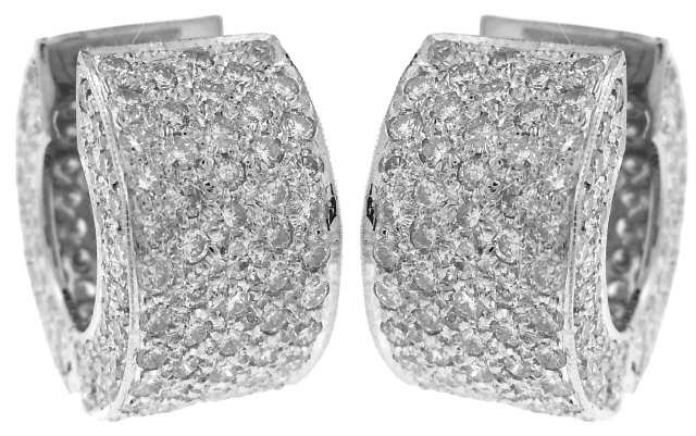 14kt white gold 3/4" diameter wide diamond huggie earrings