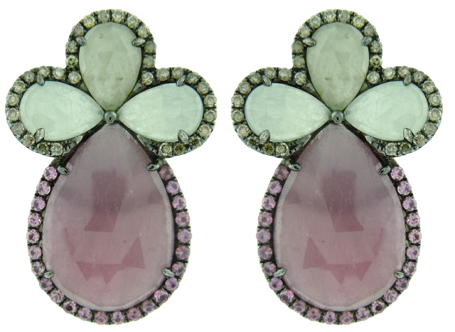 14kt black rhodium white gold white/pink sapphire, ruby, and diamond earrings