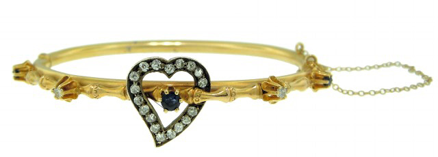 14KT YG saph & dia heart bangle bracelet