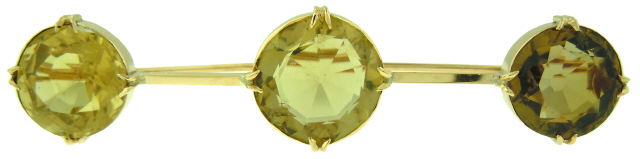 14kt yellow gold pin with three large round citrines