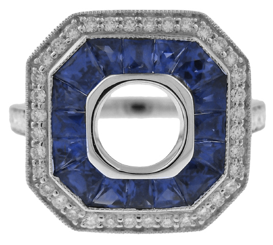 18kt white gold sapphire and diamond semi-mount ring