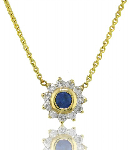 Sapphire: .15ct Diamonds: 11/.14tw I-J/SI1